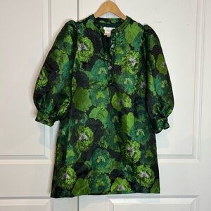 NWT Tuckernuck Pomander Place Green Floral Jacquard Samantha Dress Long Sleeve S