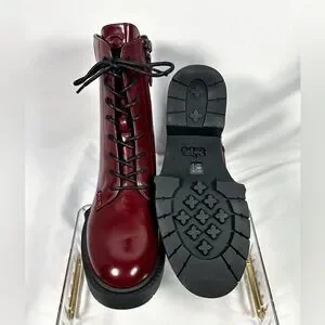 Step out in style with these chic burgundy lace-up boots. Perfect for adding a bold touch to any outfit.