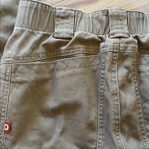 Good condition, these are thinner than other Dovetail pants I’ve had in the past. Super stretchy waistband and fit like a larger 6 through the waist but thinner through the legs. These feel like a good shoulder season work pant with the thinner material.