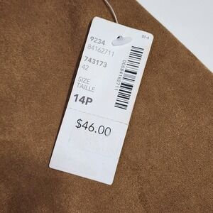 Designed for petite women in size 14P, this skirt has a lined interior and is made from a polyester-elastane blend. The suede-like texture offers edginess to its hipster, Y2K, bohemian, cowboy and 90s-inspired style. Suitable for winter, fall, and spring seasons, this skirt was made in China and is in excellent condition.