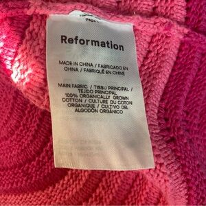Reformation Genni Novelty Open Crochet Knit Dress Fuschia/Flambé Stripe - S
