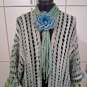 Light Green Mesh Long Ruffle Edge Sweater Large xl