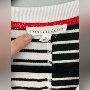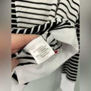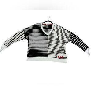 Jane & Delancey Womens medium Black/White Striped V-Neck Sweater w/Heart Accents