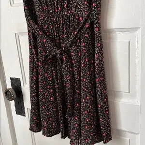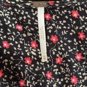Free People Fortuna floral mini dress. V-neck, buttons at the waistline on both sides, flutter sleeves, and a flowy skirt.