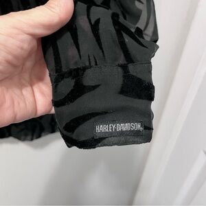 Vintage Harley-Davidson Black Burnout Velvet Sheer Button Front Blouse Size M