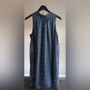 Elevate your wardrobe with this effortlessly chic Tommy Hilfiger shift dress. Featuring a sophisticated navy blue base with a crisp white block-print inspired floral pattern, this dress offers a perfect blend of preppy and bohemian style.