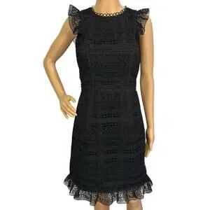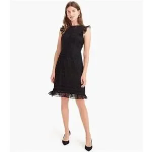 J. Crew Cap Sleeve Ruffle Dress in Mixed Lace Black Size 2