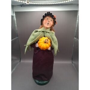 BYERS' CHOICE LTD.2011 WITCH WITH PUMPKIN Satin Dress Black Hat Artist Signed