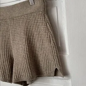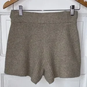 Abercrombie & Fitch waffle knit sweater shorts. High rise with an elastic waistband and small side slits. Warm and cozy with 4% wool blend knit. The elastic is slightly folded in the waistband, otherwise excellent shape.