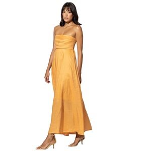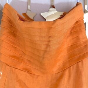 Lusana Orange Strapless Pleated Bodice Smocked Back Maxi Dress Summer Beach