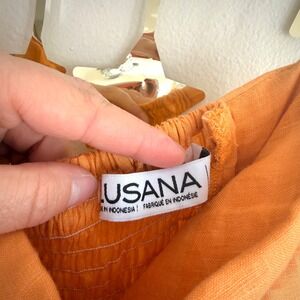 Lusana strapless maxi dress in a vibrant orange hue. This elegant piece features a pleated, tiered bodice with a smocked back for a comfortable, flexible fit. The long, flowing skirt is crafted from a lightweight, breathable fabric with a subtle linen-like texture, making it perfect for summer events, vacations, or beach outings. The clean, minimalist silhouette is elevated by the textured bodice detail and the rich, warm color.