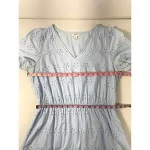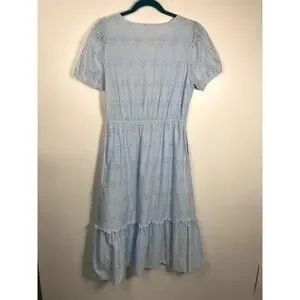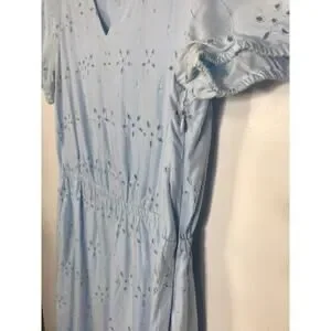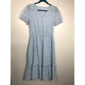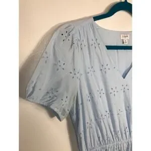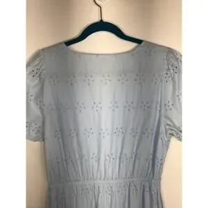 J.Crew Women's Powder Blue V-Neck Eyelet Midi Dress