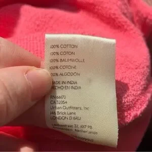 - It is an oversized, long-sleeved pullover in a pink and white colorblock pattern