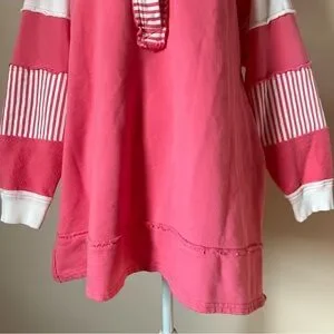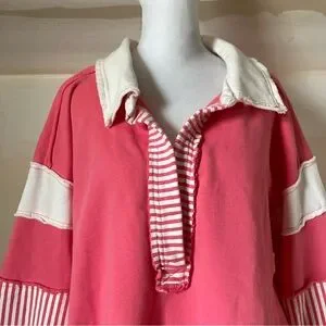 Free People We The Free Clean Prep Pink Long Sleeve Oversized Polo size Small
