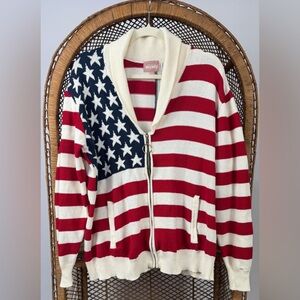 Show Me Your Mumu Zippy Cardigan American Flag Knit Patriotic Sweater Size S