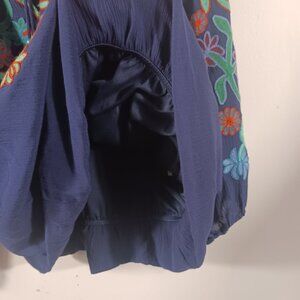 John Mark, Navy Multicolor Embroidered Peasant Blouse Medium, Boho, Festival