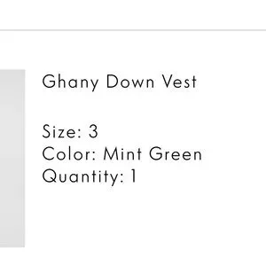 Color mint green. Size is Moncler size 3, which equates approximately to a Large however note the vest has a slim fit.