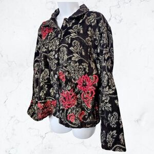 Vintage 90s Chico's Black & Red Floral Beaded Button up Jacket!
