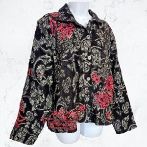 Vintage Chico's Black & Red Floral Beaded Button up Jacket