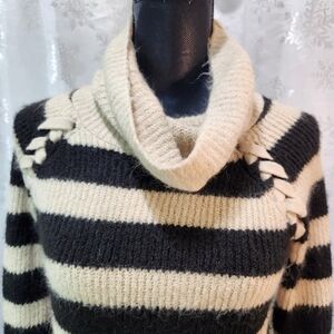 HOLLISTER Soft Stretchy Knit Black Tan Striped Cowl Neck Sweater (S)