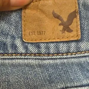 A cute pair of jeans from AE with a low rise waist and distressed look. These jeans remind me of my Y2K days! Not actual Y2k item. Good preowned condition