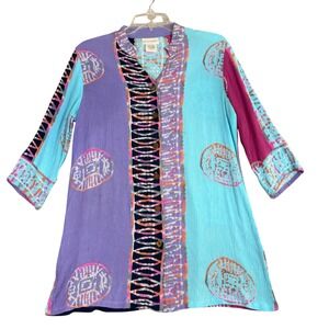 Soft Surroundings S Purple Blue Abstract Button Front Tunic Top Boho Festival