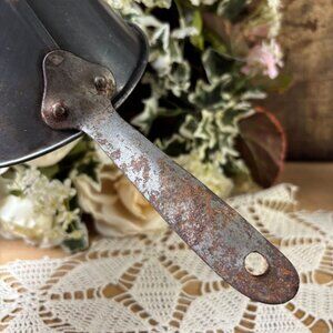 This versatile antique kitchen tool serves as a strainer, funnel, dipper, and more. Its rustic patina adds charm, making it a nostalgic collector's piece.