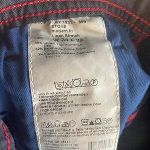 Alberto men’s navy “Stone” linen stretch pants in a Modern Fit, size W34 L32. Like‑new condition with a refined, lightweight feel—perfect for warm weather or polished casual outfits.