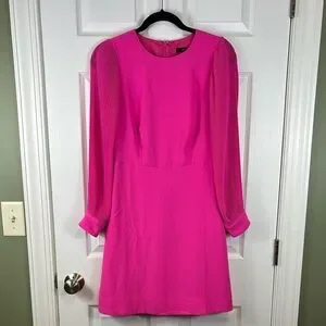 NWT J.Crew bright pink pleated sleeve a line dress sz 2
