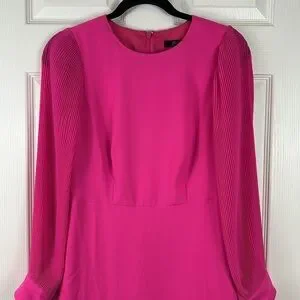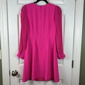 Brand new bright pink pleated sleeve a line dress ! Hidden zipper in back.
