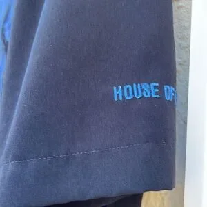 House of Blues Black/Blue Embroidered Flame Button up Men's Shirt Size XL