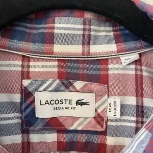 Lacoste Men's Shirt Size 45 (XL/2XL) Cotton Plaid Short Sleeve Collared Preppy
