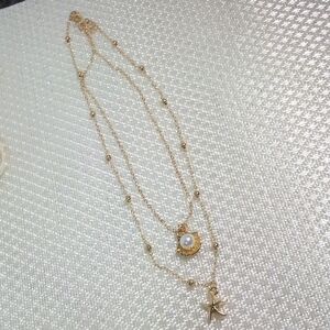 Dainty gold and white shell necklace set. Features a delicate gold colored fashion chain with white shell accents, (2) pair dainty gold colored fashion shell earrings, and a dainty shell bracelet. Paired with imPress Beach Happy 🏖️ press on nails.