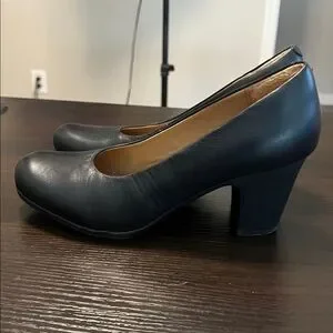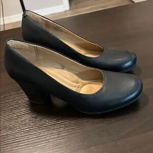 Sofft Black Leather Comfort Round Toe Heels Pumps 8M