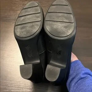 Soft black leather heels pumps, size 8M. These have padded insoles with a round toe in excellent pre-owned condition.