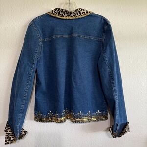 Vintage Gabby D Studded Leopard Western Jacket Women's Medium Blue Denim Sequin