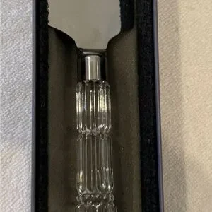 Sophisticated cake server with a clear crystal handle. Ideal for celebrations.