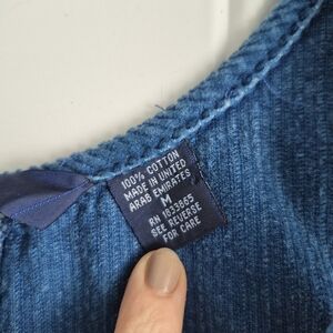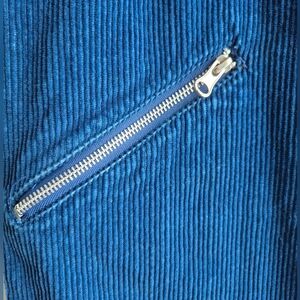 Blue corduroy zip-up overall mini dress. Zipper pockets. Size medium. 100% cotton.