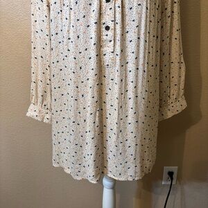 NWOT Blouse Medium Edge by Jen Rade Cream Button-Up Gold & Navy Ditzy pattern