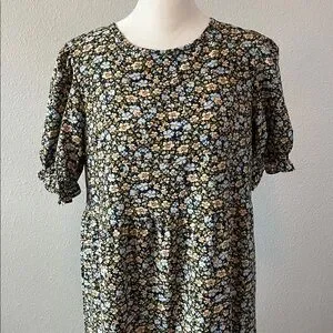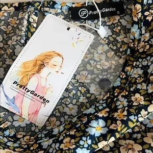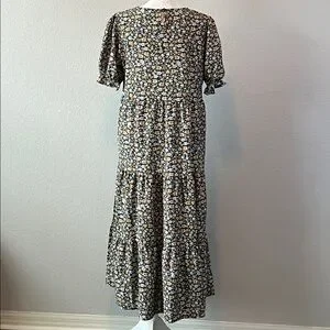 PrettyGarden Floral Ruffle Tiered Midi Dress Blue/Tan Size Small NWT