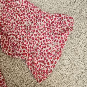 Catherines Blouse Lightweight Pink Leopard Lace Up 3/4 Sleeve Ruffle Womens 4x
