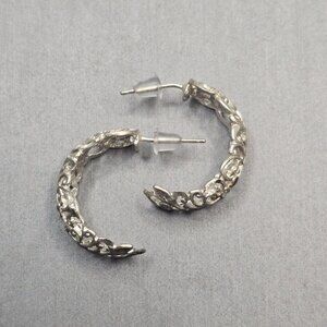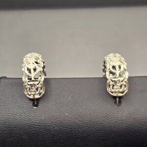 VTG Sterling Silver Diamond Cut Filigree Floral Half Hoop Earrings .75" Signed M