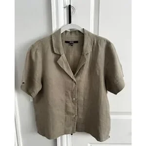 Quince 100% European Linen Short Sleeve Shirt Size: Small Color: Khaki