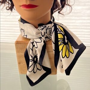 🌼Cheerful Floral Square Silk Vintage Liz Claiborne White + Black & Yellow Scarf