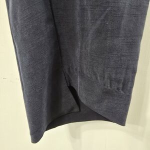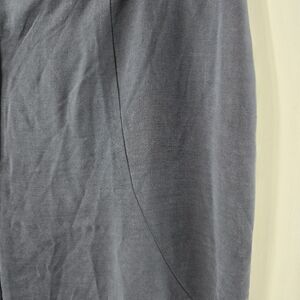 In excellent condition, these drapey drape and super soft straight leg pants look and feel like silk, and are done in an easy care eco-friendly eco-conscious sustainable modal blend, ultra lightweight. Zip, hidden button and hook bar closure. Business office work casual collegiate dark academia tennis prep old money quiet luxury clean girl preppy coastal grandma grandmother style. Side hand pockets with unique seam detail. Asymmetric Asymmetrical step slit ankle hem leg cuffs, for a unique Avant garde runway haute couture look. 32" waist and 28" inseam, measurements are approximate. Elegant refined elegance. Gray blue hue. Minimal capsule minimalist minimalism wardrobe vanilla style.