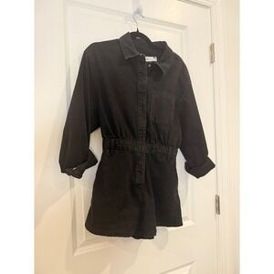 Classic Zara black denim long sleeve romper with a clean, minimalist silhouette. Easy one-piece outfit that can be dressed up or down.