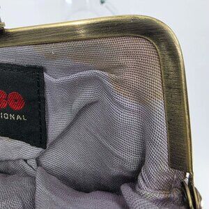 Hardware: The gold/brass finish on the kisslock frame shows fading and wear consistent with age.