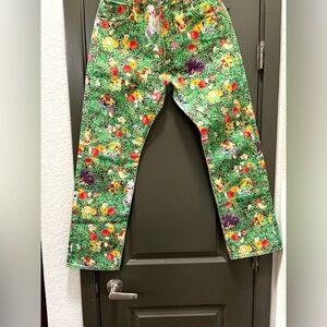Colorful Pokemon-themed jeans with vibrant floral design. Perfect for young fans. Comfortable and stylish for everyday wear.