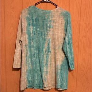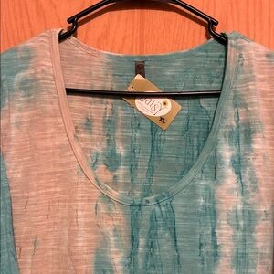 Stylish teal tie-dye design. Comfortable short sleeves. Ideal for casual outings.