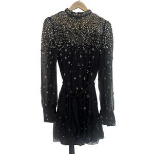 Item: Farm Rio Black/Gold Embroidered Tulle Overlay Minidress